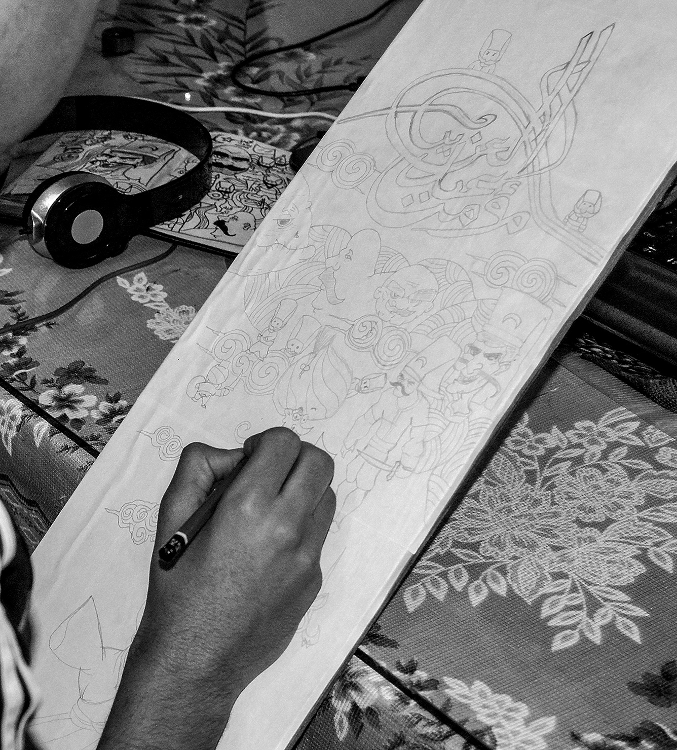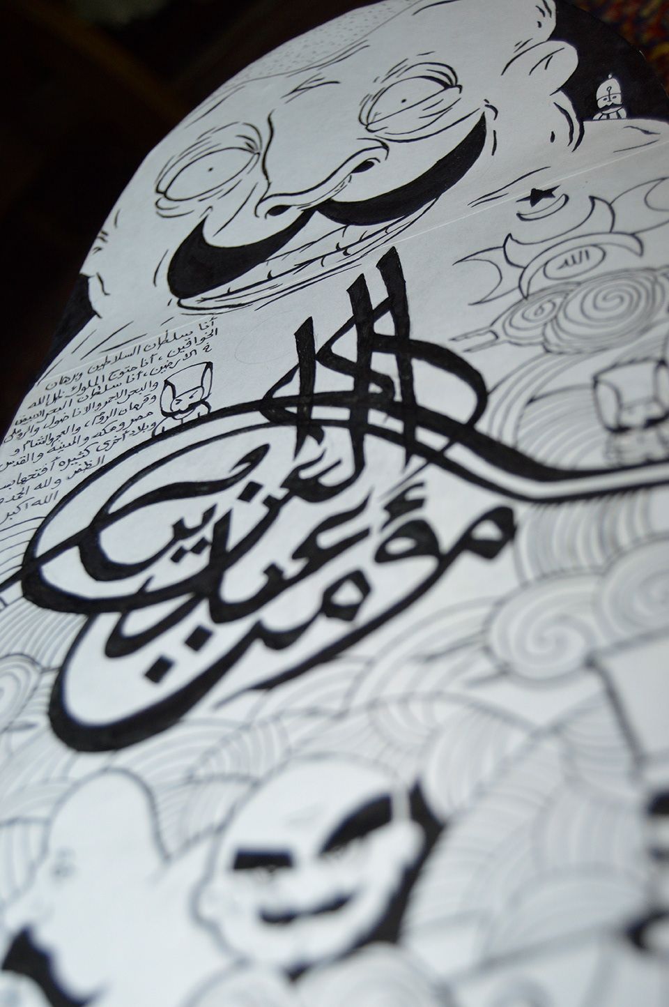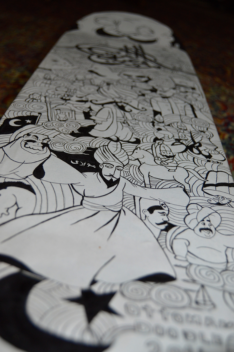 This my old skateboard , I found it Accidently so I Decided to draw doodle on it , my concept here to draw for OTTOman empire (last arabic empire ) and i start to darw my name as (taghra) and draw doodle .